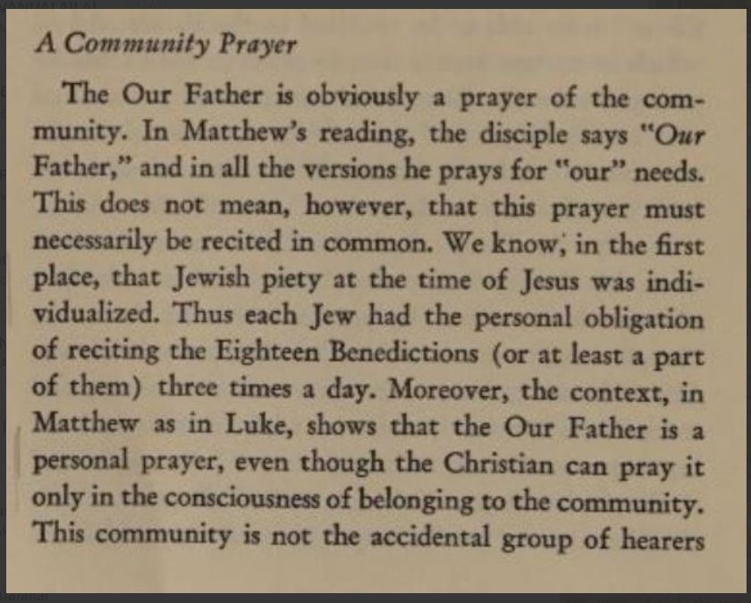 Quoting H. Van Den Bussche, “Understanding the Lord’s Prayer”, 1963